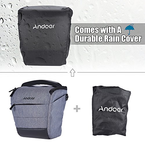 - Viene con una cubierta duradera de la lluvia y una correa de hombro ajustable. Puede ser como un bolso o un bolso de hombro para su cámara.