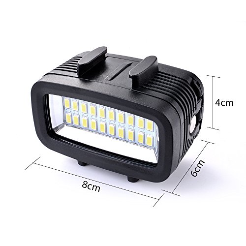 - Esta luz de vídeo portátil resistente al agua puede proveer luz de relleno para tomar fotos en la noche, en buceo u otros entornos sin rayos de luz. Resistente al agua hasta 40m por debajo del agua, perfecta para toma de fotos bajo el agua.